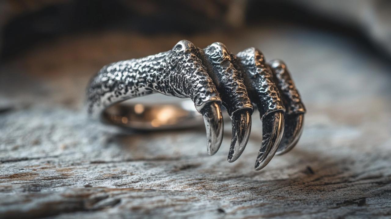 Los tratamientos superficiales aplicados a estos anillos son cruciales para lograr autenticidad. El pulido selectivo crea contrastes entre áreas brillantes y mate, imitando la forma en que la luz interactuaría con una garra real. Las técnicas de oxidación controlada generan tonalidades que van desde el gris oscuro hasta tonos verdosos, evocando el paso milenario del tiempo. Algunos artesanos emplean martillado manual para añadir irregularidades sutiles que rompen la perfección mecánica, acercando la pieza a la imperfección orgánica de los restos fósiles. Estos detalles convierten cada anillo en una obra única que captura la esencia salvaje de su inspiración.